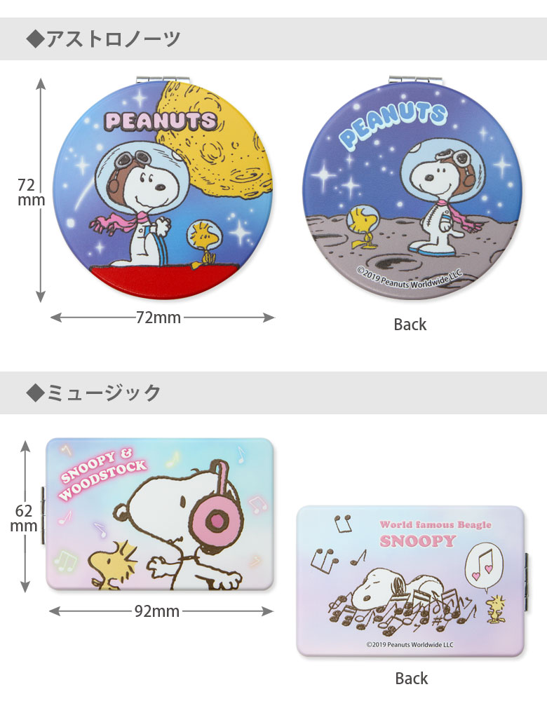 名称 ピーナッツ ダブルミラー 主素材 ABS、ガラス サイズ 丸型:約H72mm×W72mm×D11mm(折りたたんだ状態)角型:約H62mm×W92mm×D11mm(折りたたんだ状態) ラインナップ アストロノーツ (RM-6018) / ミュージック (RM-6019)スペース (RM-6020) / バス/ブルー (RM-6021) メーカー 森本産業 注意点 お使いのモニターによって、商品の色味が若干異なる場合がございます。